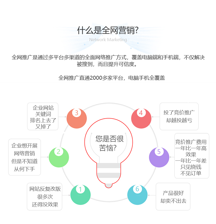 全網推廣是通過多平臺多渠道的全面網絡推廣方式,覆蓋電腦端和手機端,不僅解決被搜到,而且提升可信度。