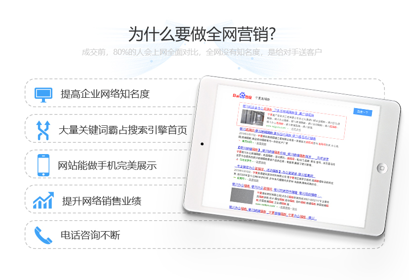 為什么要做全網營銷? 成交前,80%的人會上網全面對比,全網沒有知名度,是給對手送客戶