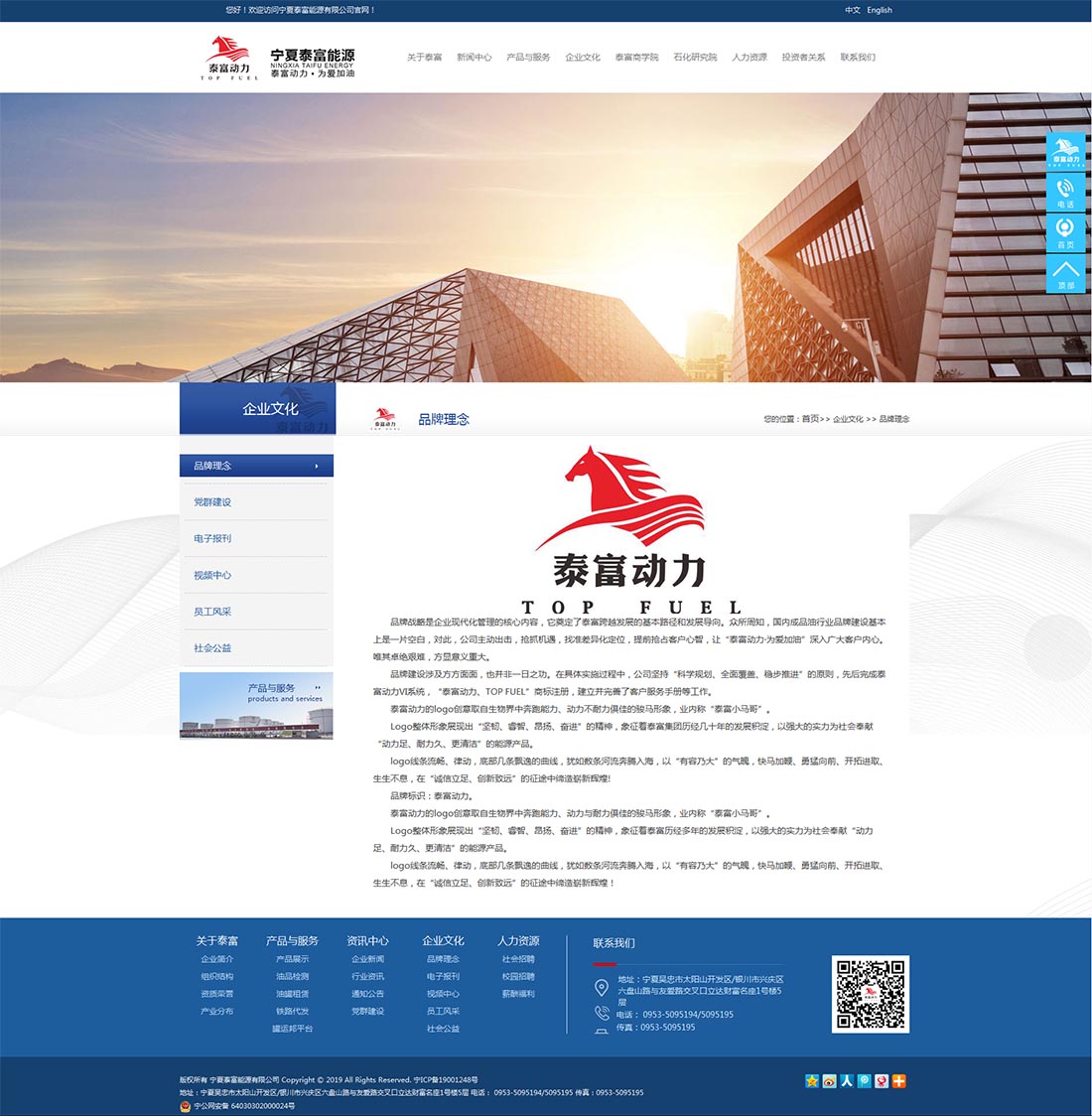 2015年,為積極搶抓國家“一帶一路”重大戰略發展機遇期,投資近7.6億元,在寧夏吳忠市太陽山經濟開發區先后成立了寧夏泰富能源有限公司、寧夏泰富能源倉儲有限公司、寧夏泰富物流有限公司、寧夏泰富石油石化產品檢驗檢測中心有限公司,并取得國家商務部頒發的成品油批發經營資質、倉儲資質、安全生產資質,擁有獨立、公正的第三方產品質量檢驗檢測機構資質(CMA)。按照“能源+倉儲+物流+質檢”四維一體的運營機制,開展柴油、汽油以及石化產品的生產經營業務。公司占地面積多達450余畝,人員規模達300余人。