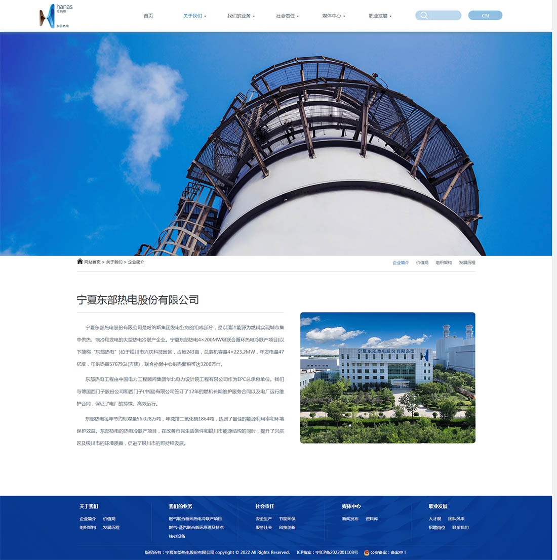 寧夏東部熱電股份有限公司是哈納斯集團發電業務的組成部分,是以清潔能源為燃料實現城市集中供熱、制冷和發電的大型熱電冷聯產企業。寧夏東部熱電4×200MW級聯合循環熱電冷聯產項目(以下簡稱“東部熱電”)位于銀川市興慶科技園區,占地243畝,總裝機容量4×223.2MW,年發電量47億度,年供熱量576萬GJ(吉焦),聯合補燃中心供熱面積可達3200萬㎡。