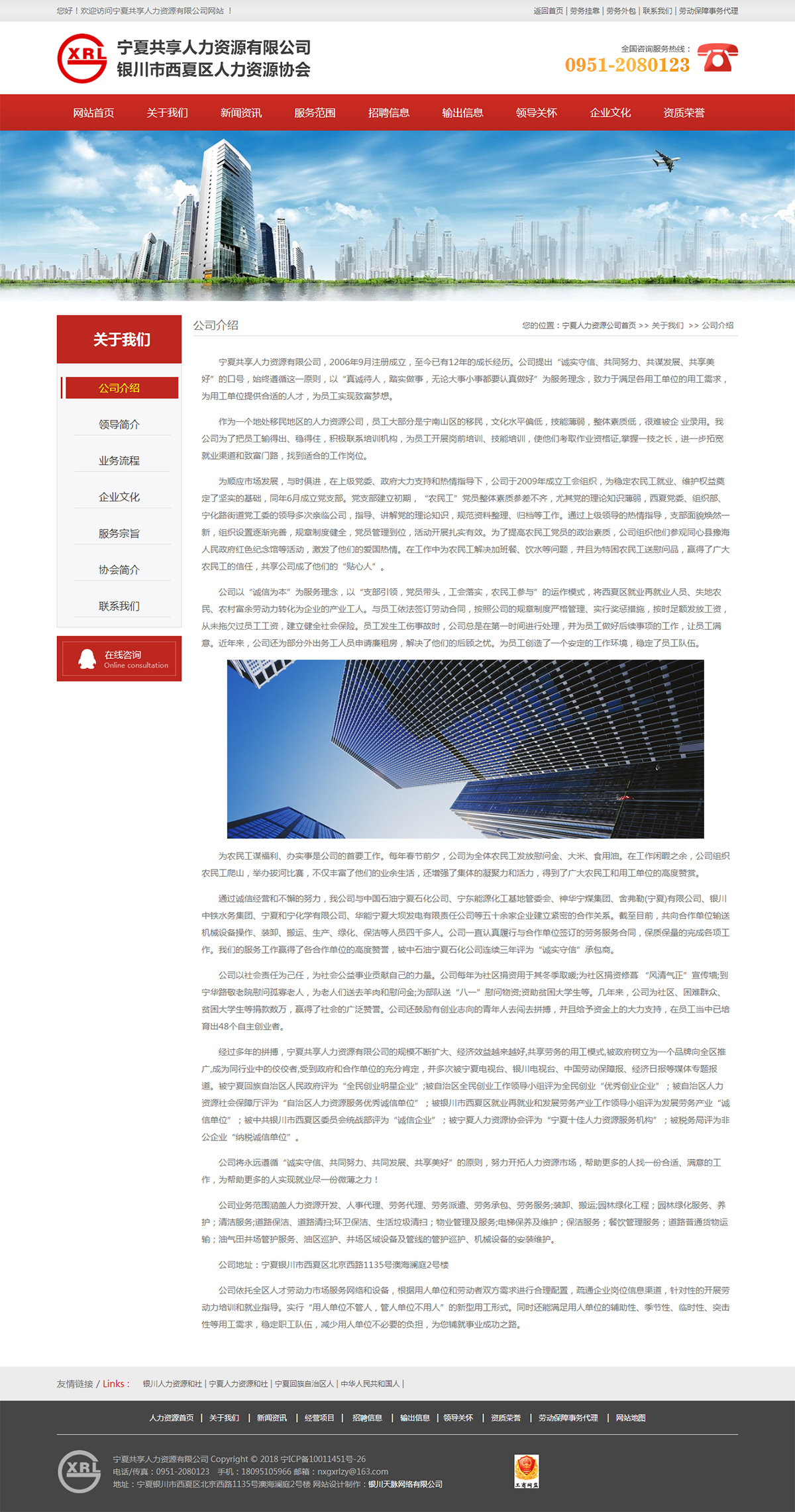 寧夏共享人力資源有限公司,2006年9月注冊成立,至今已有12年的成長經歷。公司提出“誠實守信、共同努力、共謀發展、共享美好”的口號,始終遵循這一原則,以“真誠待人,踏實做事,無論大事小事都要認真做好”為服務理念,致力于滿足各用工單位的用工需求,為用工單位提供合適的人才,為員工實現致富夢想。