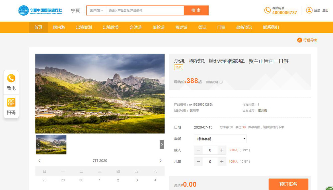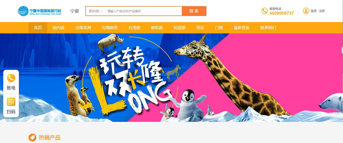 寧夏中國旅行社有限公司是寧夏銀川旅行社的龍頭企業,經國家旅游局批準,工商局注冊的國際旅行社。寧夏中旅提供出境旅游、港澳旅游、臺灣旅游、自由行、個性旅游定制