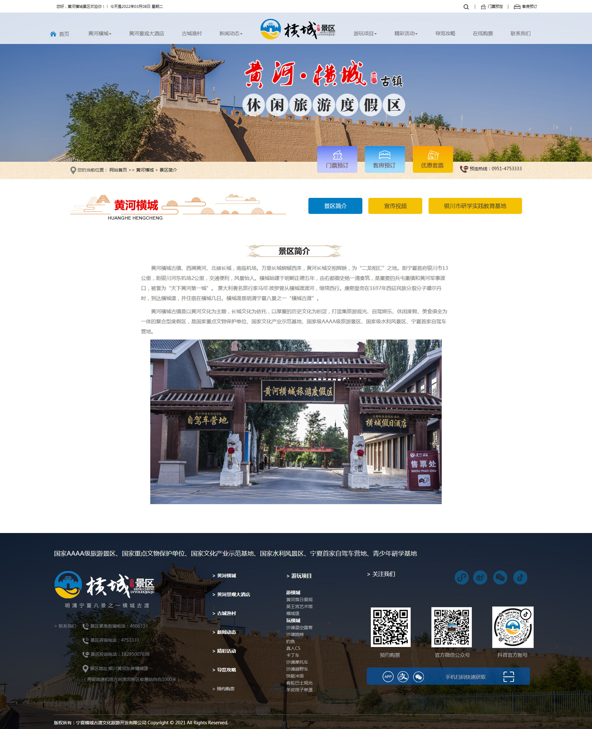黃河橫城古鎮(zhèn)、西瀕黃河、北接長城,南臨機場。萬里長城蜿蜒西來,黃河長城交相輝映,為“二龍相匯”之地。距寧夏首府銀川市13公里,距銀川河東機場2公里,交通便利,風景怡人。橫城始建于明朝正德五年,由右都御史楊一清奏筑,是重要的兵屯重鎮(zhèn)和黃河軍事渡口,被譽為“天下黃河第一城”。