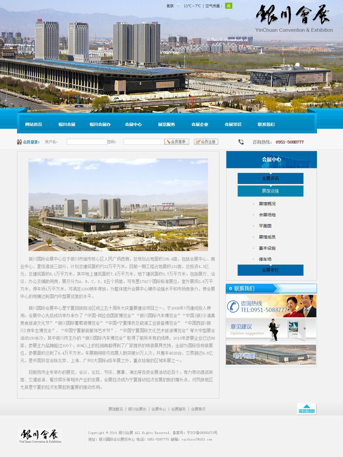 銀川國際會展中心 是我區(qū)成立五十周年大慶重要建設(shè)項目之一,位于銀川市城市核心區(qū)人民廣場西側(cè)。其作為會展中心不僅環(huán)境優(yōu)美,交通便利,設(shè)施完善,更是一座集展覽、會議、商貿(mào)洽談、信息交流、旅游、餐飲娛樂等多功能于一體的現(xiàn)代智能化展館。