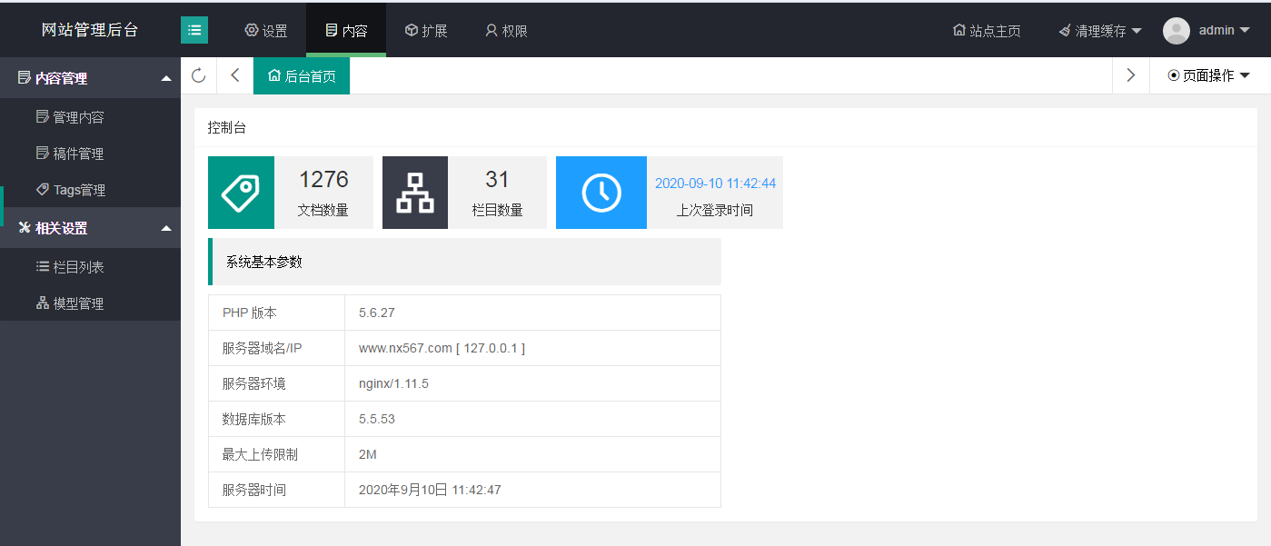輸入賬號、密碼、驗證碼,進入網站后臺操作界面