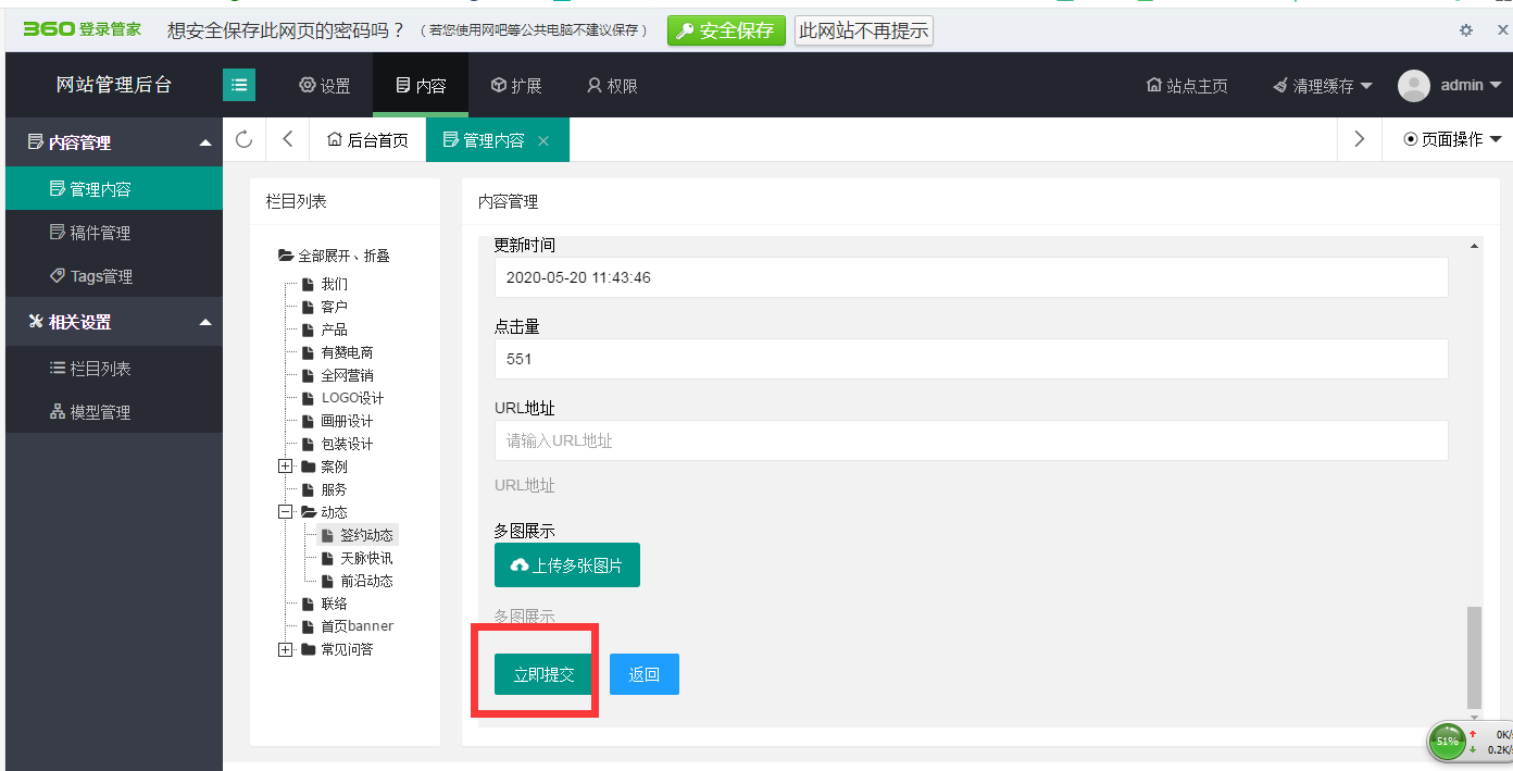 以上就是網站后臺內容,圖片及欄目增加的的操作,若有不明白的地方,請聯系我們相對應的客服,她會協助您解決問題!